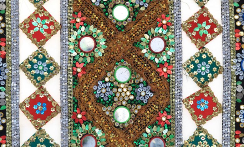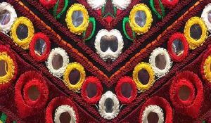 Sewing small round mirrors and sequins with different patterns on clothes with colored silk threads is called “mirror embroidery”. This art is sometimes used with other embroidery; Such as ajida embroidery, silk embroidery, braid embroidery.