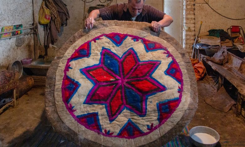 Felt is made by using animal wool in high pressure and humidity. Soap and egg yolk can also be used to improve the quality of work.