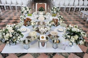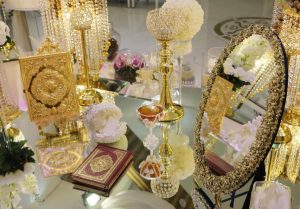 SHAMDOON (Candles/candelabras) : which are placed next to the mirror and they are the symbole of energy and clarity in the couple’s life together.